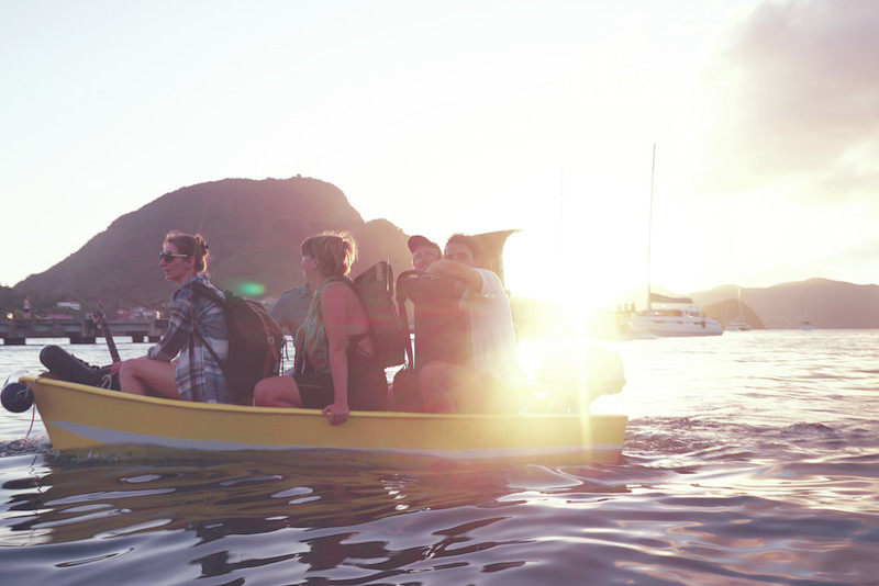 Notre hiver se passe au mouillage. Honky Tonk ne va au port que pour le plein d’eau. Les concerts se passent dans la rue ou dans les bars de la plage. Les trajets se font en annexe, à la rame pour les novices et avec le hors-bord pour les fiers néo-dinghy-capitaines. La période de Noël et du Nouvel An est favorable à la musique, mais le jazz-band est aussi invité pour donner le rythme à des mariages, des apéros ou des marchés. Le groupe s’invite beaucoup lui-même aussi, sur les quais ou les places des villages, aux embarcadères ou aux terrasses des paillotes. Globalement, la musique est un liant entre les locaux et les musiciens, qui se font rapidement repérer et inviter.