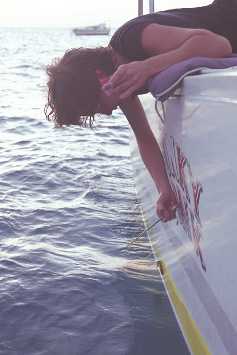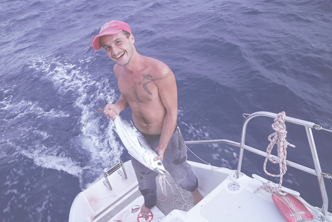 Cette première partie du voyage n’échappe pas à l’époxy et à la peinture bi-composante. Que serait un grand départ s’il n’y avait pas des réparations à faire ? Restauration du trampoline, changement du gréement dormant, révision de l’accastillage, réparation de certaines parties du pont – imprégnées d’eau – et du rail d’écoute, construction d’une nouvelle annexe, changement du système de ventilation des moteurs, achat d’une nouvelle grand-voile après l’avoir déchirée… Sika, résine epoxy, fibre de verre, disqueuse et ponceuse sont toujours à portée de main. Bots pensait qu’en achetant un bateau plus récent (son monocoque était de 1978 et Honky Tonk date de 2003) il aurait moins à sortir sa caisse à outils. Ce n’est pas vraiment le cas, même si Honky Tonk fête cette année ses 15 ans seulement. C’est tout juste le moment pour que le temps passé sur l’eau se fasse sentir dans le bois, la strat’, l’accastillage… sans oublier les moteurs.