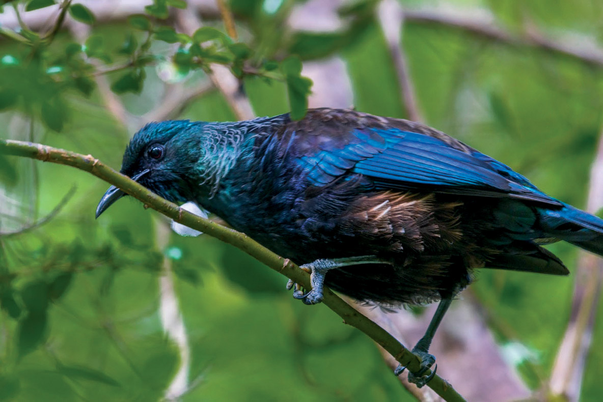 Il est temps de quitter le Fiordland et de reprendre la mer vers Stewart Island par 47° de latitude sud. Stewart Island est la troisième île de Nouvelle- Zélande, entre les quarantièmes rugissants et les cinquantièmes hurlants. Sa situation géographique lui valut très tôt la visite des explorateurs. On n’est d’ailleurs pas sûr que le capitaine Cook, qui découvrit cette terre lors de son premier voyage en 1770, ait pu conclure ou non à son insularité : il cherchait surtout à découvrir la pointe sud de la Nouvelle-Zélande et les conditions météo n’étaient pas favorables à une exploration poussée du détroit de Foveaux qui sépare l’île Stewart de l’île du Sud. Nous emprunterons le détroit pour rallier la seule ville d’importance, Oban, qui semble baigner dans une ambiance bienveillante tant les habitants sont accueillants ! Pourtant, l’hiver, la météo doit être particulièrement rude... L’économie dépend essentiellement du tourisme et de la pêche. Luke, un pêcheur de langoustes dont les « cray pots » se trouvent à Dusky, nous indique quelle bouée utiliser, mais le mouillage n’est pas très confortable et nous bougeons vers Golden Bay dans Paterson Inlet, juste au sud. C’est l’occasion de se rendre sur l’île Ulva, réserve ornithologique, qui nous gratifiera de la rencontre d’un Kàkà, perroquet rare qui vit dans les forêts, et de nombreux Tui, l’oiseau « chanteur » emblématique de la Nouvelle-Zélande.