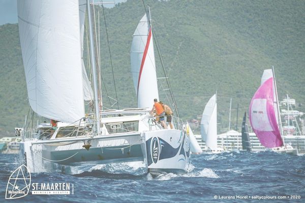 « C’était un rêve pour moi de participer à l’Heineken Regatta. Le passage du pont et la parade pour rejoindre le lagon, l’ambiance tous les soirs lors des super concerts, j’adore ! Il y a quelques années, j’ai rencontré Pierre-Walter Varkala, alias Piwi, de Calypso Croisière : je lui ai confié en gestion Cyflotin, mon Eclipse 472. La condition, c’était que je puisse participer à l’Heineken Regatta. Basé en Martinique, Piwi a acheté un KL28 Trophée afin de dispenser des cours de cata de sport. En 2018, il s’est classé 3e de notre classe à bord de Kataplasm, son bolide, alors que je terminais bon dernier. Mais c’était ma première participation… D’ailleurs, en 2019, j’ai fait 4e – avec pas mal de casse. Mais pour cette édition 2020, la quarantième, mon objectif est bien le podium ! J’avais également prévu cette année de participer à la Caribbean Multihull Challenge, mais hélas ça n’a pas été faisable ; peut-être l’année prochaine… Je me suis inscrit à la HR avec un super équipage : Anaïs, Moon, Chloé, Dov, Jérémie, Cédric, Steven et moi. Mais seul Jérémie est un compétiteur – il participe régulièrement à des régates sur la Martinique. Comme le cata était loué pour dix jours de croisière/plongée après la régate et que nous n’avions pas de place au port à Saint-Martin, nous avons participé avec tout le matériel, y compris les compresseurs. Bref, Cyflotin était un peu trop chargé… On était quand même chauds patate pendant le convoyage Martinique-Saint-Martin : on a même tenu une moyenne de 9,18 nœuds de la Guadeloupe à Simpson Bay.