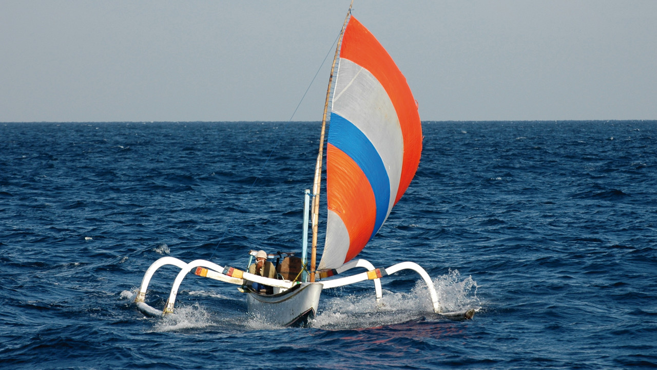 Dans le Selat Badung, Jangada file 12 à 13 nœuds, emporté par un fort courant portant au sud-ouest. La houle est impressionnante dans ce détroit, 5 à 6 mètres de creux, alors que le vent ne dépasse pas 15 nœuds. L’entrée du port de Benoa n’est pas évidente à situer, d’autant que nous marchons en crabe, avec plus de 40° de dérive… Du jamais-vu ailleurs ! Nous arrivons à Bali !