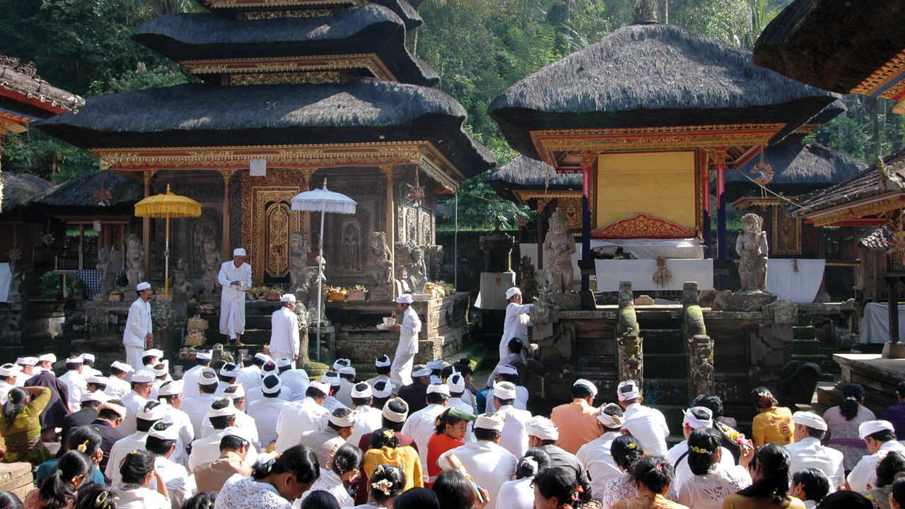 Les Balinais semblent le partager avec un même naturel. Les rites religieux et les prières sont un devoir quotidien, et l’on y lit à chaque instant aussi bien la ferveur religieuse que l’habileté manuelle des habitants dans la confection des offrandes, auxquelles un Balinais peut consacrer couramment 40 % de ses revenus ! Certains rites relèvent même plutôt de l’animisme. Nous avons assisté, au hasard de nos visites dans l’île, à différentes cérémonies, toutes hautes en couleur.