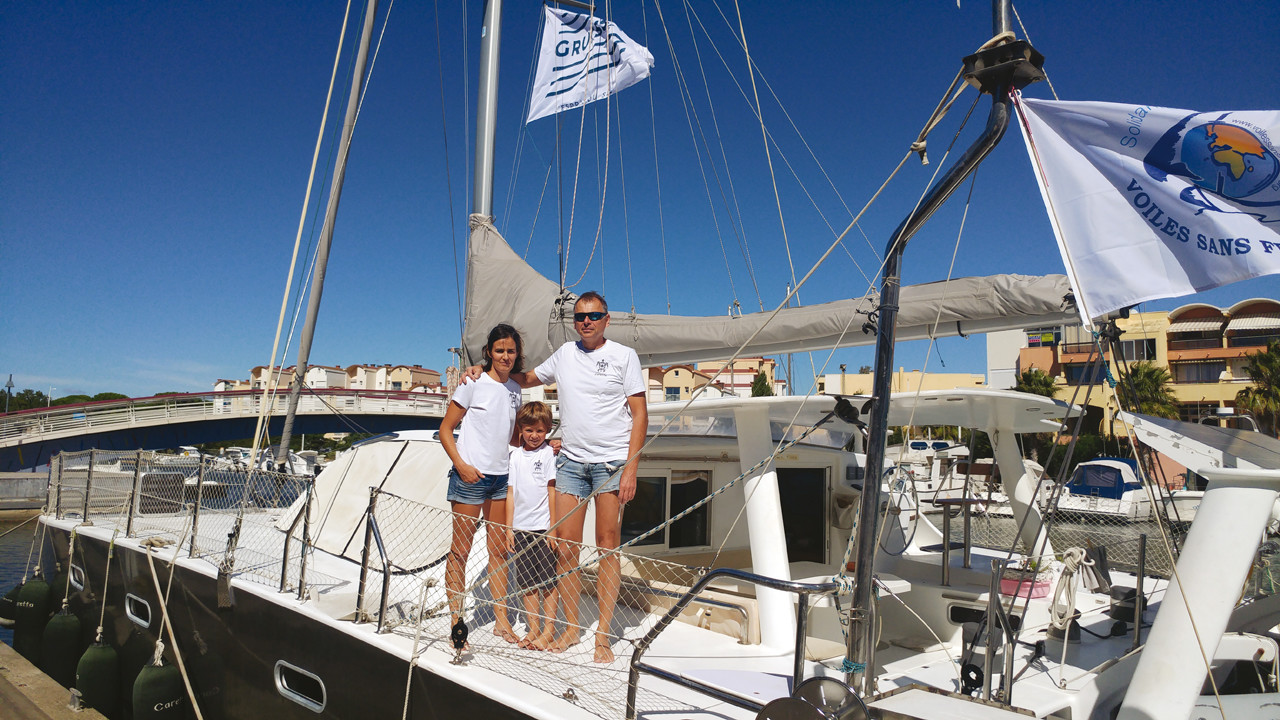 Nous sommes un couple avec un enfant de 8 ans. Marie, 30 ans, kiné salariée, et Michel, 56 ans, cardiologue au moment du départ. Nous nous sommes rencontrés sur l'idée du voyage ! Marie en solitaire et sac à dos, et moi, je rêve de tour du monde en voilier depuis l'âge de 8 ans... Elle a fini par troquer ses chaussures de marche au profit d'un catamaran de 50 pieds...