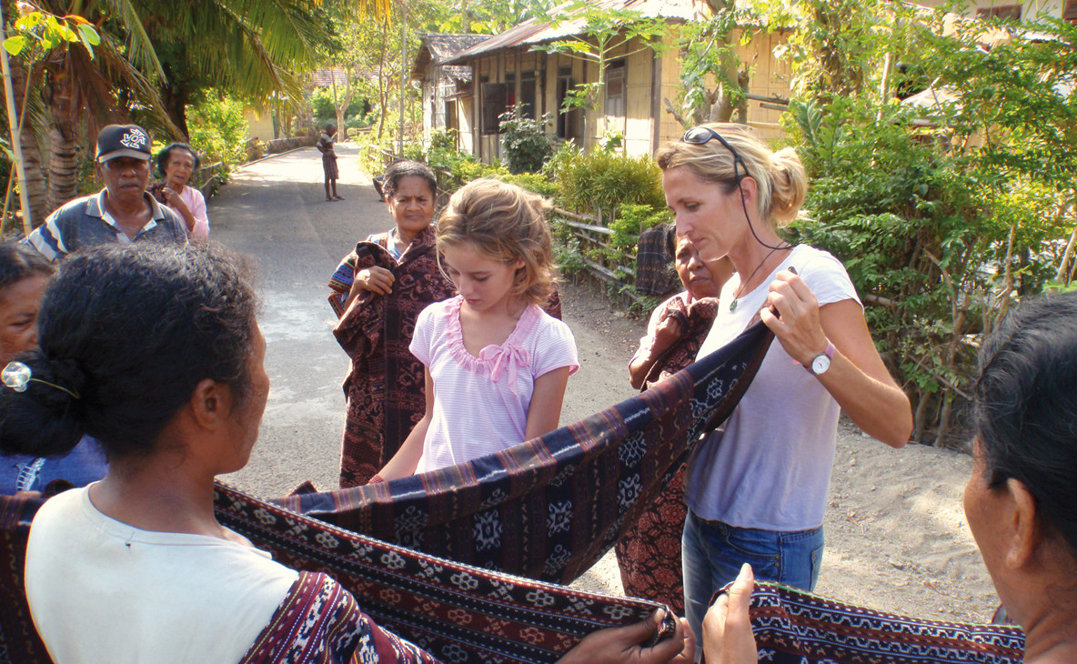 Nous parvenons au village côtier de Sikka, l’une des premières colonies établies par les Portugais à Florès. Un village de pêcheurs aux maisons de bois construites sur les roches noires et le sable sombre de la grève. A Sikka, il n’existe pas une femme qui, en sus de ses travaux ménagers quotidiens, ne tisse un ikat dans un coin de sa maison ou de son jardin. Lorsque nous arrivons, elles reconnaissent notre driver, dont les parents habitent le village.