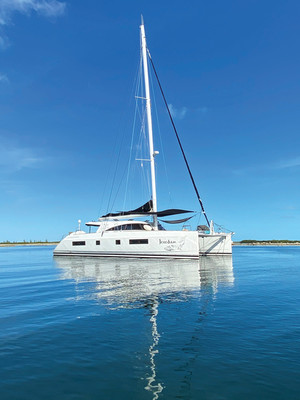 En 2012, nous avons découvert le multicoque lors d’un voyage en Polynésie entre amis. Ce fut la révélation, nous partirions à la voile. Puis est venu le temps des locations pour être sûrs de faire le bon choix, et surtout s’assurer que la vie à bord nous plaisait vraiment. Nous avons ensuite décidé d’acheter notre bateau. En 2015, nous avons choisi l’Helia 44, avant de le changer pour un catamaran plus grand. Nous sommes à Bimini aux Bahamas. Il fait chaud. La mer est splendide et la pêche excellente. Le lagon est si beau… Le rêve est devenu réalité. Ici, on se lève en général vers 8 h ou 9 h, et ensuite on « travaille » chacun de son côté. Christophe a pas mal de boulot, car le Nautitech 542 est grand et assez complexe. Au menu : les moteurs, le dessalinisateur, le groupe, les frigos, les congélateurs, les panneaux solaires (on en a changé un qui était cramé)... Moi, c’est rangement, vaisselle, lessive et cuisine. Je fais le pain, la pâte à pizza, et les pâtes sablées et feuilletées que je congèle. Sinon, forcément, je cuisine beaucoup de poissons, de lambis et de langoustes. Ici, c’est bien meilleur marché de manger des langoustes que du poulet ! Nous achetons les douze langoustes pour 50 dollars. Chaque matin, nous allons relever les nasses posées non loin du cata, et on récupère des poissons et des crabes presque chaque jour. Les locaux sont super sympas. Chaque jour, des navigateurs (beaucoup sont américains) viennent nous voir, car ils sont curieux et trouvent Jeredam super grand. Ils demandent toujours à visiter. Nous avons fait de nombreuses connaissances. Ce soir, il y a un pêcheur qui vient manger à bord avec son épouse, et ils nous ramènent quatre grosses langoustes. L’après-midi, c’est canoë, pêche, balade et farniente, puis apéro, et souvent, quelqu’un passe nous voir. Puis film et dodo. Voilà nos journées de dingues !