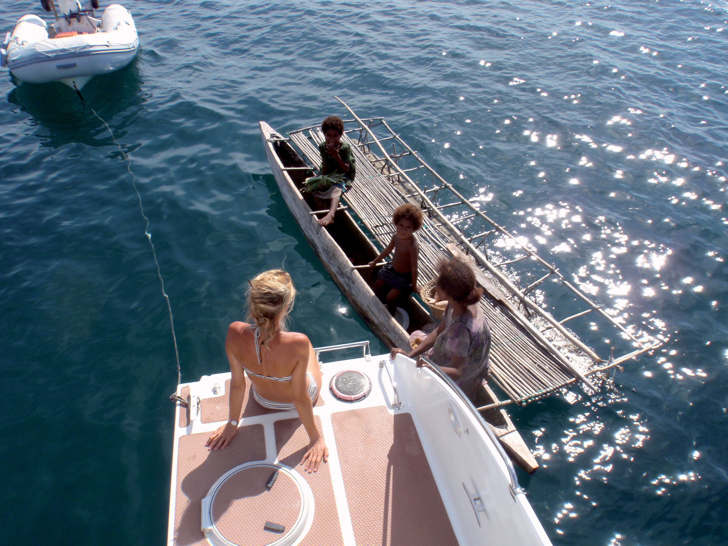 J’ai préféré tracer la route au large, à plusieurs dizaines de milles des côtes, pour éviter les risques de piraterie côtière. C’est que nous faisons route le long des côtes du pays des raskols, ces gangs qui font de la Papouasie Nouvelle-Guinée l’un des pays les moins sûrs du monde. La nuit, nous naviguons tous feux éteints. J’étais par ailleurs décidé à n’arriver que de jour à Port-Moresby, histoire d’avoir le temps d’apprécier le risque sécuritaire auquel nous pourrions éventuellement être exposés, et ensuite de verrouiller une situation acceptable à ce niveau avant la tombée de la nuit. Cap sur Port-Moresby donc, mais avec, pour moi, un bon niveau de vigilance chevillé à l’esprit. Information succincte mais suffisante donnée à Barbara et aux enfants, car pour autant, cela me semblait inutile de les abreuver d’informations alarmistes. J’avais néanmoins pris soin, lors de notre dernière connexion Internet au Vanuatu, de rechercher sur la toile les récits d’agressions, parfois extrêmement violentes, dont avaient été victimes des voiliers ayant pris le risque de faire escale sur les côtes de la grande terre de Papouasie. Une méthode toujours très instructive. Toutes avaient eu lieu sur le mainland, aucune dans les îles extérieures. Mon option consistait donc à rallier directement la capitale de Papouasie Nouvelle-Guinée depuis les Louisiades, et à n’en approcher que de jour.