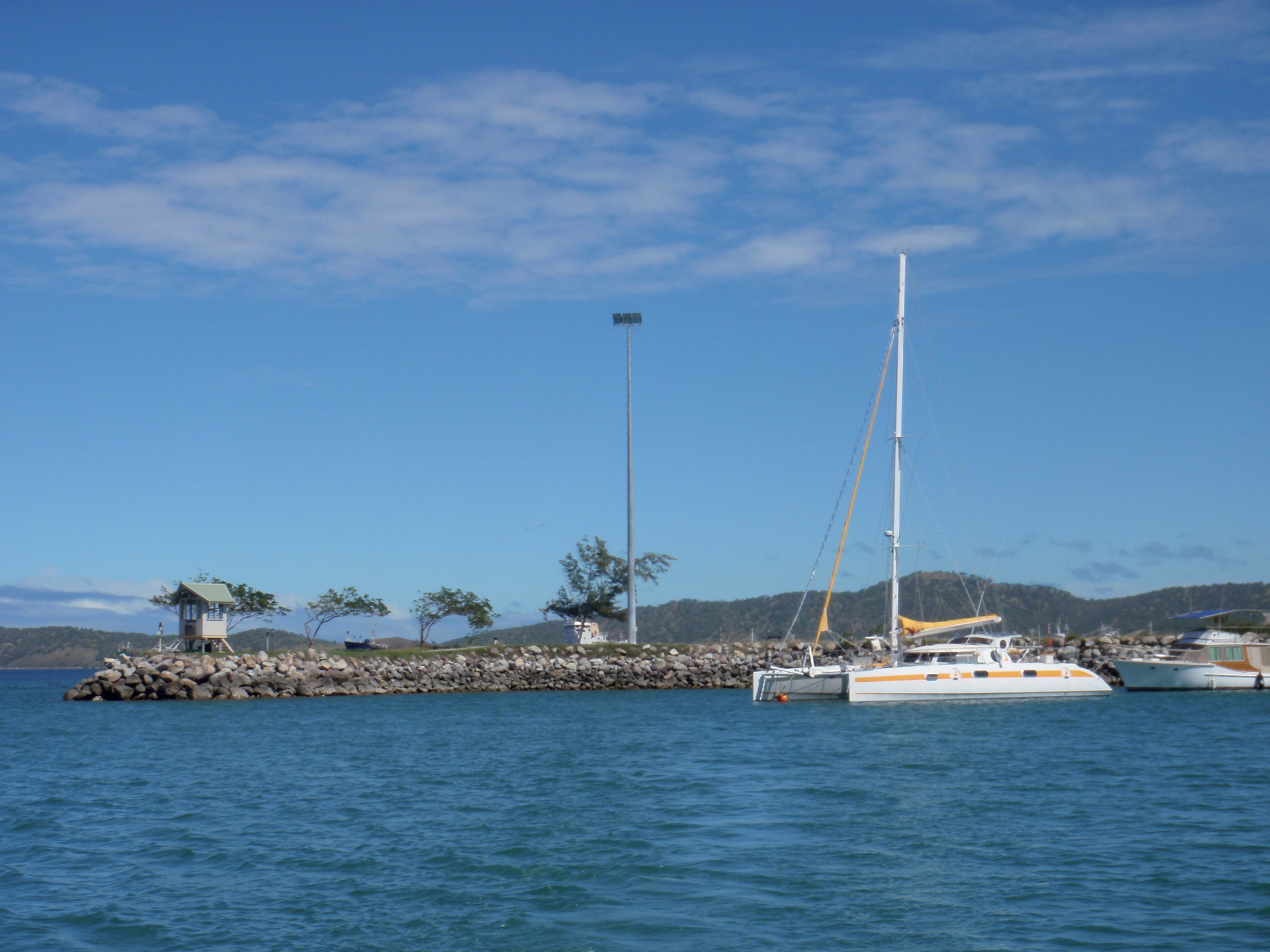 Je suis néanmoins persuadé que la situation sécuritaire évoluera bientôt dans ce pays, qui connaît une croissance rapide et voit venir à lui d’importants investissements étrangers. Notre escale dans ce lieu pas encore charmant n’était motivée que par le débarquement de mon fils aîné, qui devait rejoindre la France pour ses études. Le plan ? Gagner directement, en milieu de journée (notre vitesse est adaptée en conséquence), l’enceinte de la marina, sécurisée (il paraît qu’il y a même des murs d’enceinte avec barbelés !) du Royal Papua Yacht Club, à peu près le seul et paraît-il très chic yacht-club que nous fréquenterons de tout notre voyage. Les premières images aperçues de Port-Moresby ne me font pas envisager d’y passer ma retraite, mais le boom économique qu’occasionne la récente exploitation des gisements de gaz naturel provoque visiblement du développement dans cette ville sans charme.