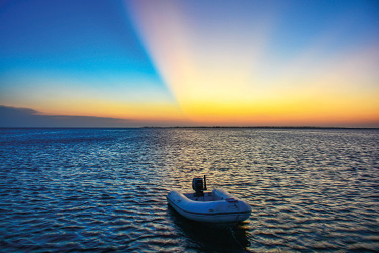 Le mouillage exposé à l’ouest garantit des couchers de soleil exquis, tous les jours, ou presque…