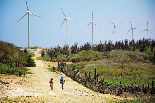 Mis à part l’extrême nord de l’île qu’on peut considérer comme modérément escarpé (le Brandaris, plus haut sommet, culmine à 241 m), l’ensemble des terres est relativement plat. Nous avons donc découvert Bonaire en vélo, qui est pour moi l’un des meilleurs moyens de visiter l’île en prenant son temps et sans trop suer… Les grands lacs roses, les immenses cactus et la côte au vent de l’île figurent parmi les découvertes incontournables.