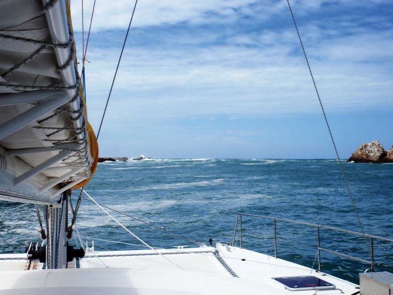 Franchissement en sortie de la passe de Knysna. La règle : attendre des conditions favorables pour ne pas se faire prendre dans les déferlantes…