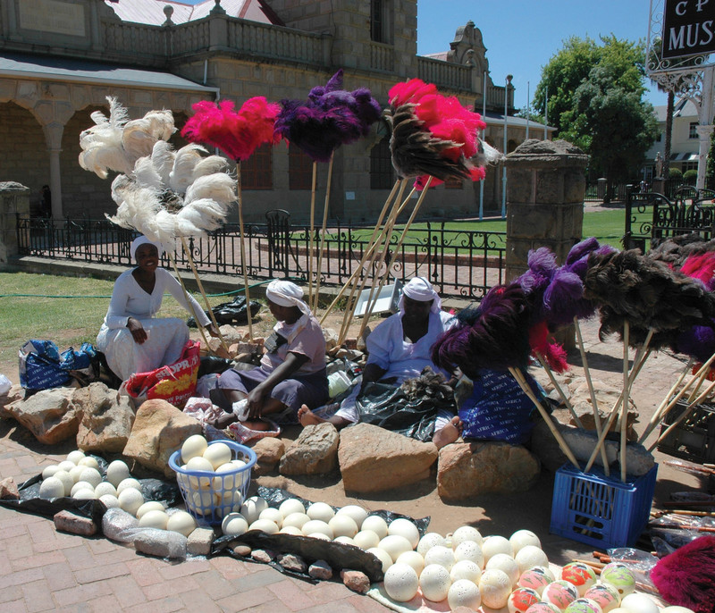 Vendeuses de plumes d’autruches dans la région d’Oudtshoorn.