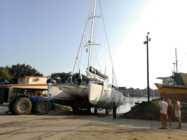 Sortie d’eau de Maitai à Richard’s Bay afin de réparer un joint de saildrive et de caréner.