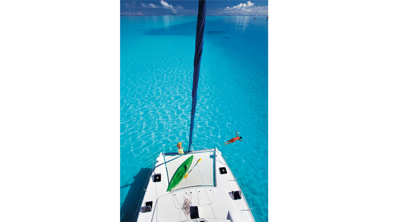 Tout d’abord, on ne part pas à l’autre bout du monde à l’improviste. Papeete est à 18 000 km de Paris, 6 500 km de Los Angeles, 9 500 km de Tokyo et 6 000 km de Sydney. Les billets d’avion sont chers, voire excessivement chers, si vous les prenez au dernier moment, les vols si peu nombreux qu’ils sont souvent complets des semaines à l’avance, et l’offre de location de multicoques pas illimitée, et donc mieux vaut réserver sa place. Surtout au meilleur tarif. Retrouver les traces de Gauguin, Brel, ou encore Fletcher nécessitera plus de deux ou trois semaines de location. Mais nul doute que vous aussi tomberez immédiatement sous le charme er reviendrez plusieurs fois visiter cet archipel mythique, aussi vaste que l’Europe. Alors, tout comme vous ne faites pas la Grèce, les Baléares et les fjords norvégiens le même été, il en est de même en plein milieu de l’océan Pacifique. Parce que la Polynésie, ce n’est pas un seul et unique archipel, mais cinq : les Marquises, les Tuamotu, les îles de la Société, les Gambiers et les îles Australes. Les distances entre eux sont suffisamment conséquentes pour se limiter à un seul, et il y a de quoi faire, sur chaque période de location. De l’archipel des Gambiers au sud-est à Maupiti tout à l’ouest, ou des Marquises à Rurutu, les distances frôlent les 1 000 milles. Bareboat, avec skipper, avec équipage ou à la cabine, toutes les solutions sont bien sûr possibles, mais sachez que l’image paradisiaque de ces archipels ne doit pas faire oublier la rigueur de navigation nécessaire à votre sécurité : passes étroites, courants parfois forts, balisage quasi inexistant, a fortiori la nuit, grains orageux à certaines saisons…
