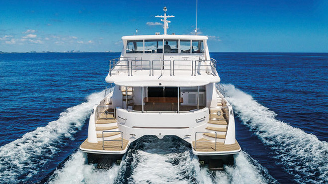 Horizon Power Catamarans est une marque surtout connue aux Etats-Unis et en Asie pour le moment. Créée en 2009 par Richard Ford et Stuart Hegerstrom, l’enseigne ambitionne cependant de conquérir d’autres marchés, notamment en Europe. La fabrication est quant à elle assurée par le chantier naval Horizon Yachts, fondé en 1986 et situé à Kaohsiung, sur l’île de Taïwan. Horizon Yachts est spécialisé dans la construction de yachts de 52 à 150 pieds et s’est taillé une jolie réputation sur le marché grâce à ses prestations luxueuses et à son concept semi-custom. La gamme Horizon Power Catamarans s’articule quant à elle autour de quatre modèles de 52 à 74 pieds, un panel qui devrait évoluer dans les prochaines années puisque, depuis son lancement, Horizon Power Catamarans connaît un succès croissant, avec déjà plus de 50 unités vendues. Une performance d’autant plus remarquable que le constructeur ne propose que des modèles semi-custom, voire totalement custom pour le PC74.