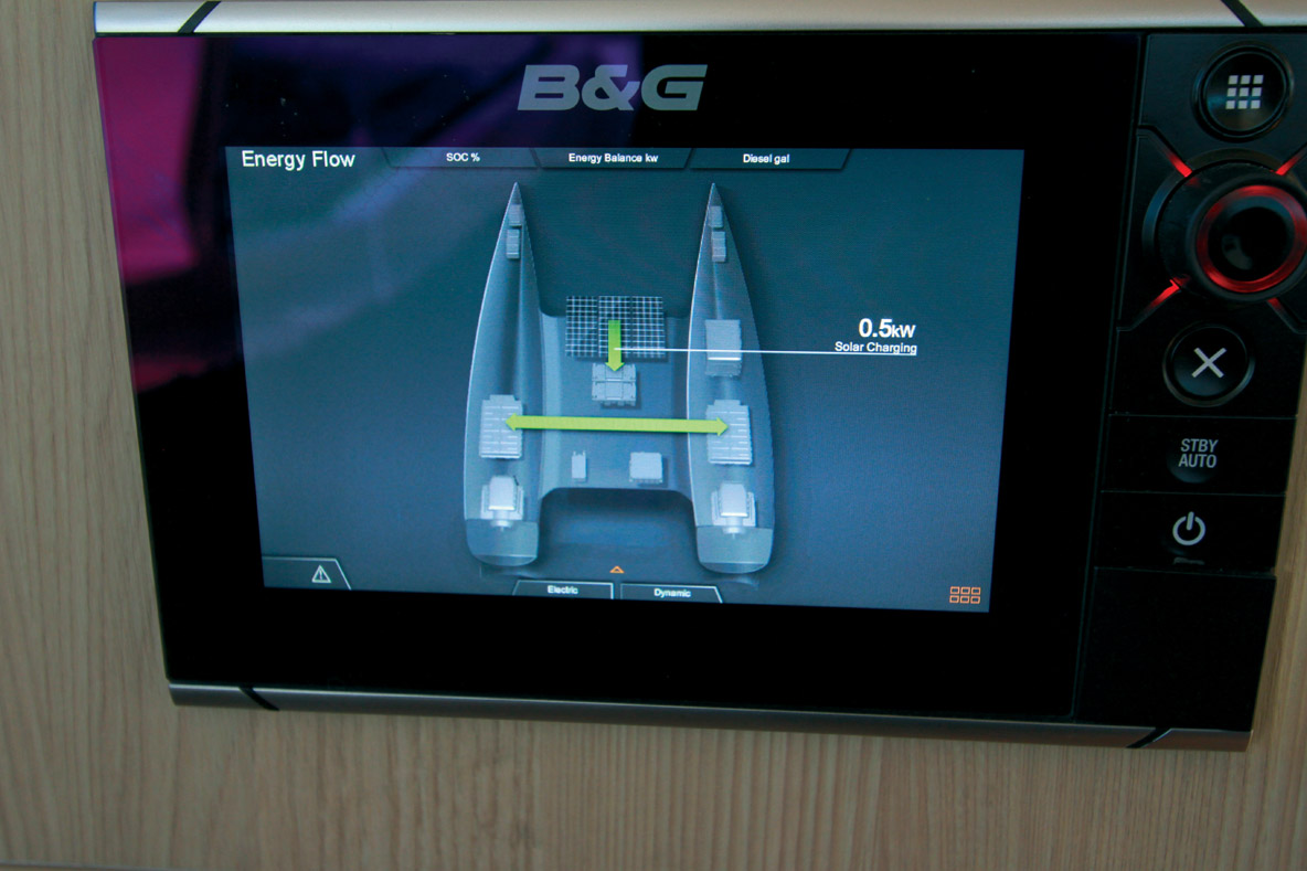A moins de posséder un Sunreef ECO, cette possibilité est encore peu réalisable, puisqu’elle nécessite des cellules photovoltaïques intégrées dans le bordé. Pour autant, c’est un excellent emplacement puisque, en dehors de l’exposition directe au soleil, les panneaux profitent de la réverbération sur la surface de l’eau.