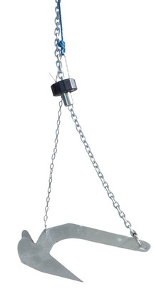 Que celui qui ne s'est jamais trouvé avec une ancre coincée nous jette la première pierre… Le système est simple et fonctionne parfaitement, puisqu'un tube est en place sur la chaîne et relié au diamant de l'ancre, et reste à poste. Si l'ancre est bloquée, on descend sur la chaîne un anneau lesté qui vient emprisonner le tube et dégage l'ancre par l'extrémité opposée au point de tire de la chaîne. Simple et efficace !